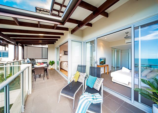 On the generous ocean-view balcony you will find a dining table and two sun lounges and a BBQ