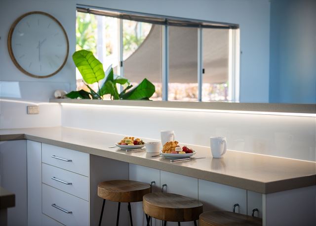 Please note our properties are fully self-contained with full kitchens and laundries. Linen & bath/pool towels are supplied with beds made up, along with a starter kit of tea, coffee, sugar, toilet paper, milk, and detergents, etc (to get you through your first night).
