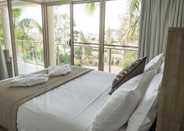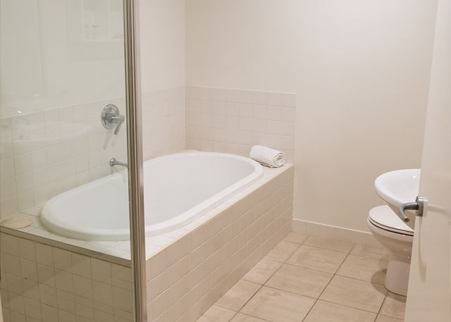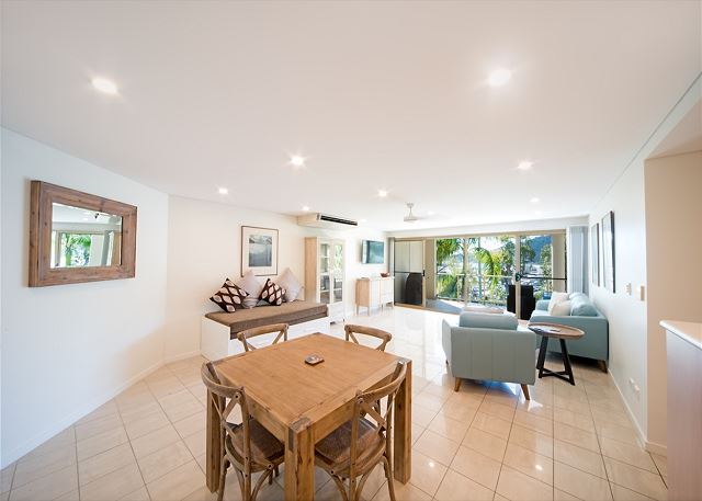 The laid back ambiance of Airlie Beach reflects throughout this one bedroom two bathroom apartment that features ocean views from the main bedroom as well as the living area.