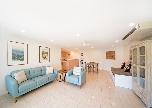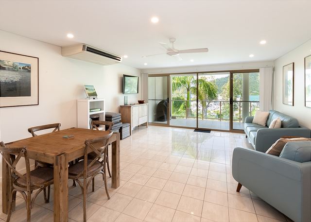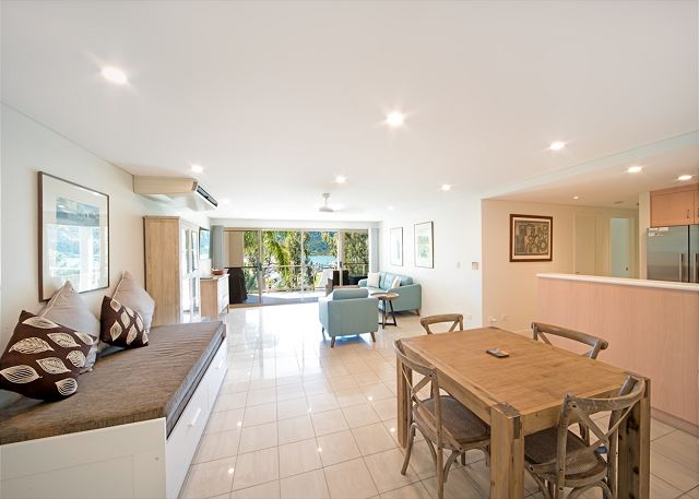 The kitchen is fully equipped with dishwasher and quality appliances. The open plan living area spills out on to the large private deck with stunning views over the Port of Airlie. Guests have access to the resort pool that includes a spa. Secure undercover parking allow for 2 car spaces.