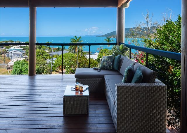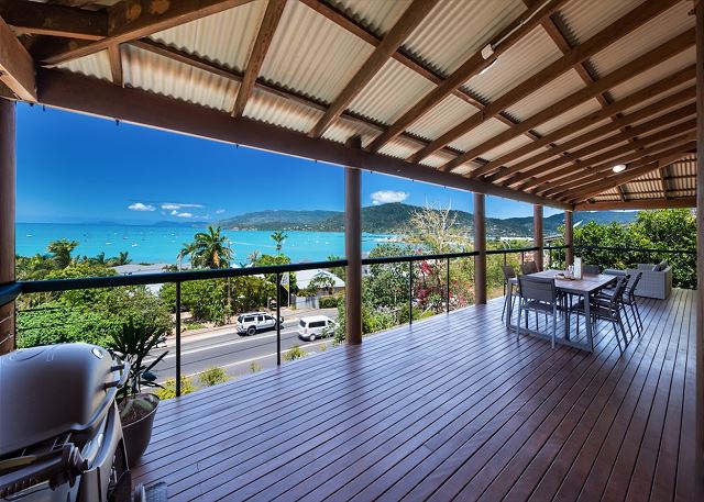 49 On Airlie is a beautiful four bedroom holiday home situated in one of the best locations in Airlie Beach. Being walking distance and just a short stroll to the main street of Airlie Beach you could leave your car in the garage for your entire stay. You will love the uninterrupted views of the Coral Sea and Whitsunday Islands beyond especially from your sparkling private pool.