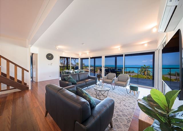 This fully refurbished property makes a big statement with its brilliant exterior set against the bright blue Coral Sea glistening at it's front door. Enter through the double iron gated doors that take you straight into the top floor of this amazing property.