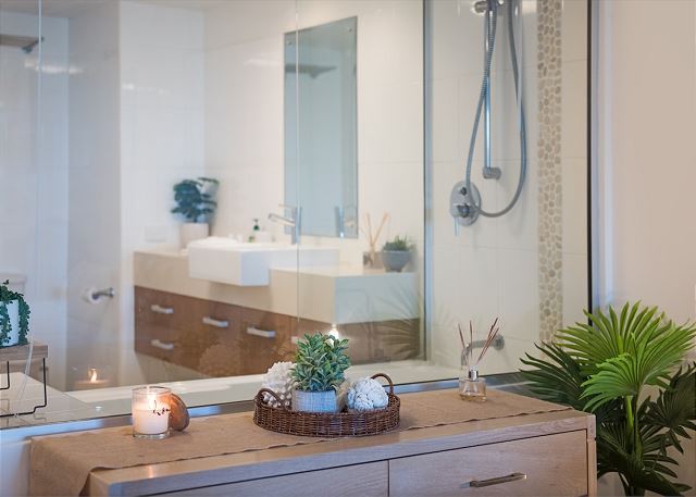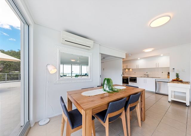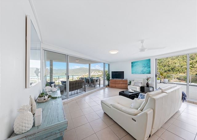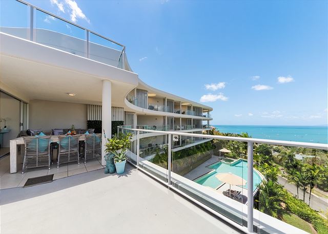 The options are endless with this stunning upper level apartment, which takes advantage of the most spectacular views that the Whitsundays has to offer. This luxury apartments comprises of it's own entry foyer and is one of the largest apartments in the complex. We still can't get over the size of the rooftop terrace that is ideal for bringing out the yoga mats, enjoy a game of coyts, or just lounging on the sun beds while enjoying the wonderful views of Airlie Beach, the Coral Sea and the Whitsunday Islands beyond.