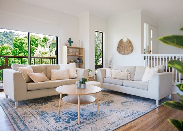 The home is filled with lots of natural light and has glass sliding doors on two sides of the living area that can be opened to enjoy the gentle sea breezes all year round.