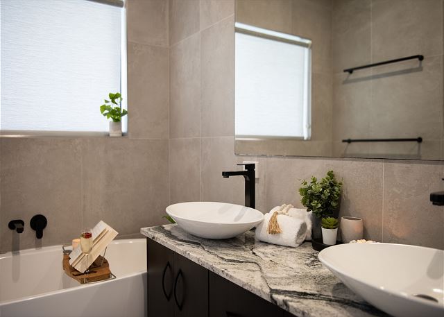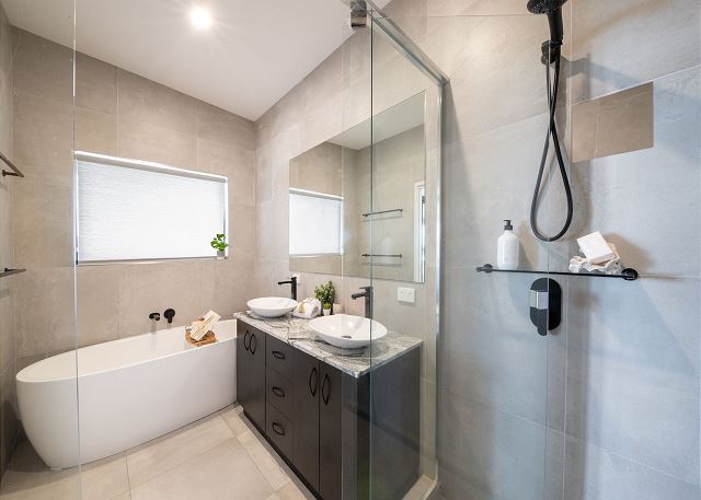 All four bedrooms have lush Redbook carpet including the master with a gorgeous ocean view outlook and an ensuite with a double semi-frameless shower, a freestanding bath and Kalahari vanity benchtops with double sinks.