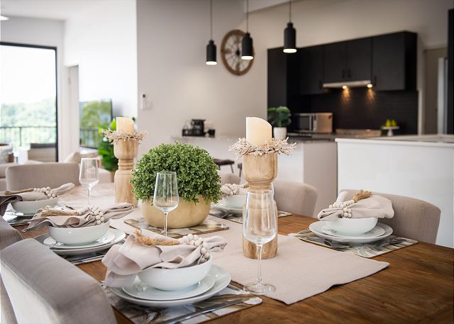 Please note our properties are fully self-contained with full kitchens and laundries. Linen & bath/pool towels are supplied with beds made up, along with a starter kit of tea, coffee, sugar, toilet paper, milk, and detergents, etc (to get you through your first night).