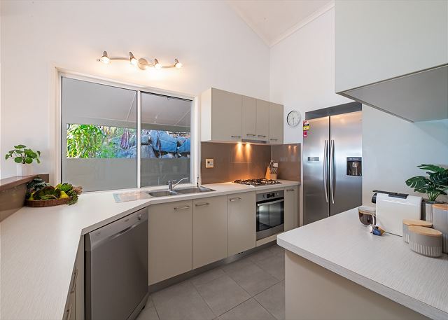 Featuring four bedrooms, two bathrooms upstairs, large fully equipped kitchen, laundry, fully air-conditioned and tastefully furnished throughout for a fresh beach vibe. The downstairs bedroom includes it's own self contained kitchenette, bathroom and living space. Nestled in a quiet part of Airlie Beach but still only a stroll to the main street, marina, shops, restaurants and nightlife.