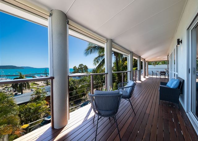 The open plan style kitchen and living area upstairs, flows out onto spacious balconies with breathtaking views. Relax in your pool with a sparkling ocean backdrop or enjoy dining on the deck watching the gentle lights of the marina glisten on the bay.