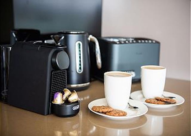 Full Kitchen, Refrigerator, Coffee Machine, Microwave, Toaster, Cookware, Dishwasher
