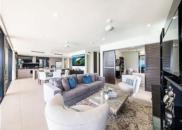 When you first step into this luxury 4 bedroom penthouse apartment you will be in awe of the 180 degree uninterrupted views of the Whitsunday Islands emerging from the turquoise coloured waters of the coral sea. Take in the uninterrupted views as you open the floor to ceiling sliding doors onto an expansive balcony. With you own private 10m lap pool, BBQ and ample entertaining space, you cannot escape the breath-taking view from every angle.
