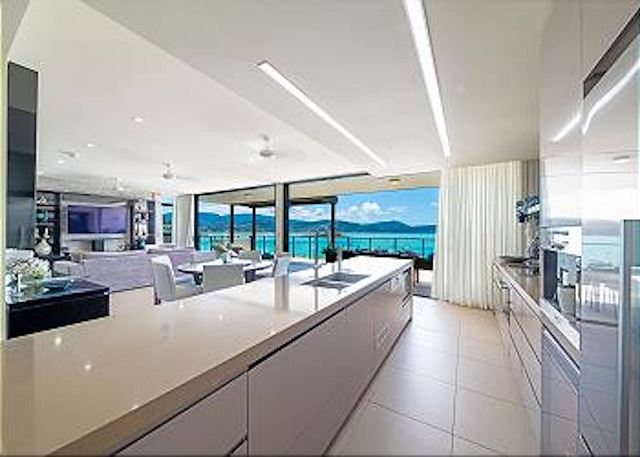 Entertain your family and friends with a large modern kitchen equipped with Miele appliances, coffee machine, bar fridge and zip filter. Cooking supplies can be obtained from local supermarkets nearby or take advantage of local fresh seafood delivered to your door. At the end of a day enjoying all the Whitsundays has to offer, you will be captivated by the magnificent sunset views and as darkness falls, moored yachts in the bay will appear like stars before your eyes.