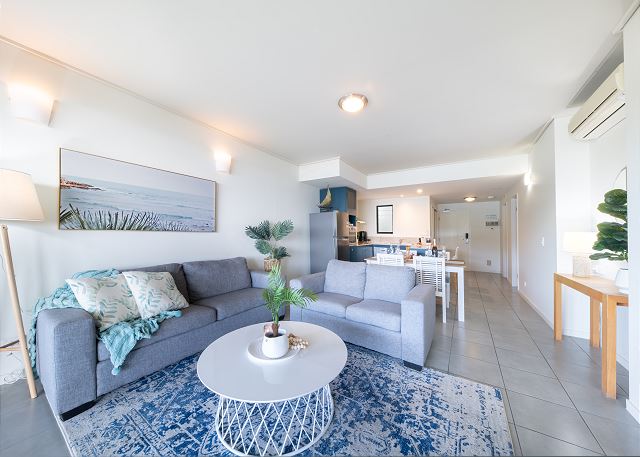 Enjoy the perfect Airlie Beach holiday accommodation in this top-floor two-bedroom, two-bathroom apartment ideally located within walking distance of the town centre and foreshore. Perfect for couples, families, or friends, this modern Whitsundays holiday apartment combines comfort, convenience, and coastal charm for a relaxing tropical escape.