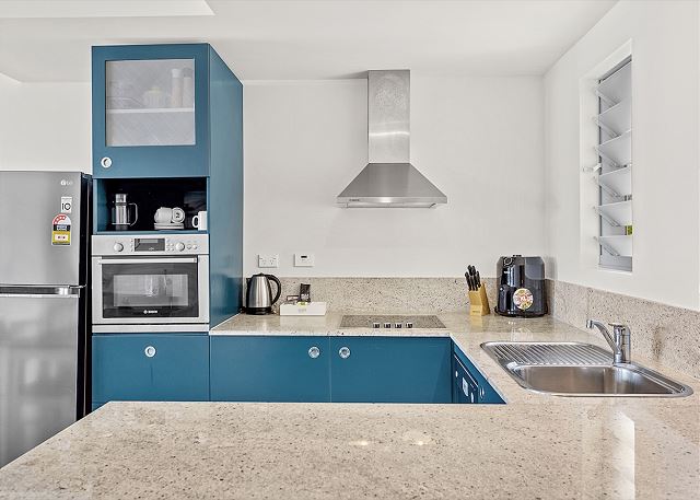 The apartment has been thoughtfully designed to maximize space. The open floor plan combines the living area, dining space, and a compact kitchen, ensuring convenience and cosiness. Decorated with a coastal appeal, the interior is bright and inviting, offering a refreshing ambiance that complements the surroundings. Step onto your private balcony and enjoy alfresco dining, sea breezes, or savour a morning coffee.