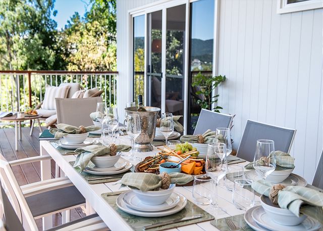 king, queen, shower, toilet, tub, twin/ single, Dining, Smart TV, Air Conditioning, Clothes Dryer, Hair Dryer, Internet, Iron & Board, Linens Provided, Living Room, Parking, Towels Provided, Washing Machine, Wifi, Free Wifi, Coffee Maker, Dishwasher, Kitchen, Microwave, Oven, Refrigerator, Toaster, Dining Table, Kitchen Island, Ocean View, Balcony, Lawn / Garden, Outdoor Grill, Private entrance, Dining Area, Smoke detectors, Fire extinguisher